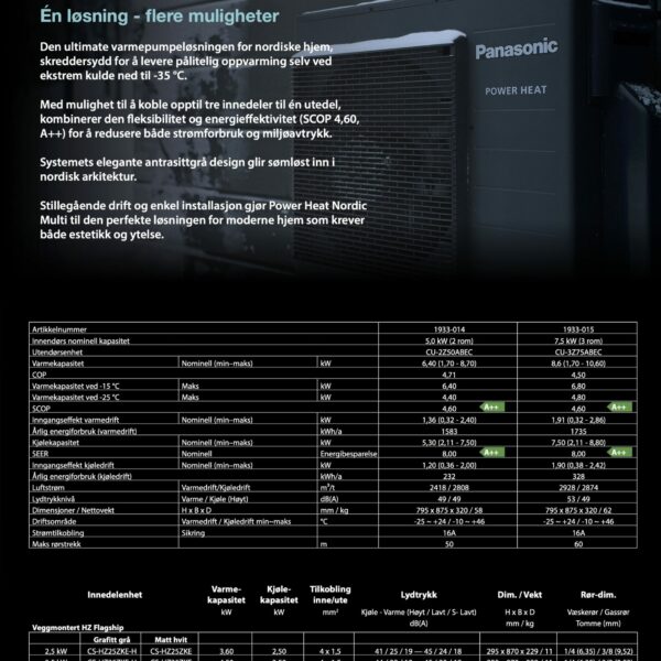 Panasonic Multi TZ gir riktig temperatur i opptil tre rom i boligen. Den gir høy grad av komfort og lave energikostnader, samtidig som du får friskere luft og bedre inneklima.